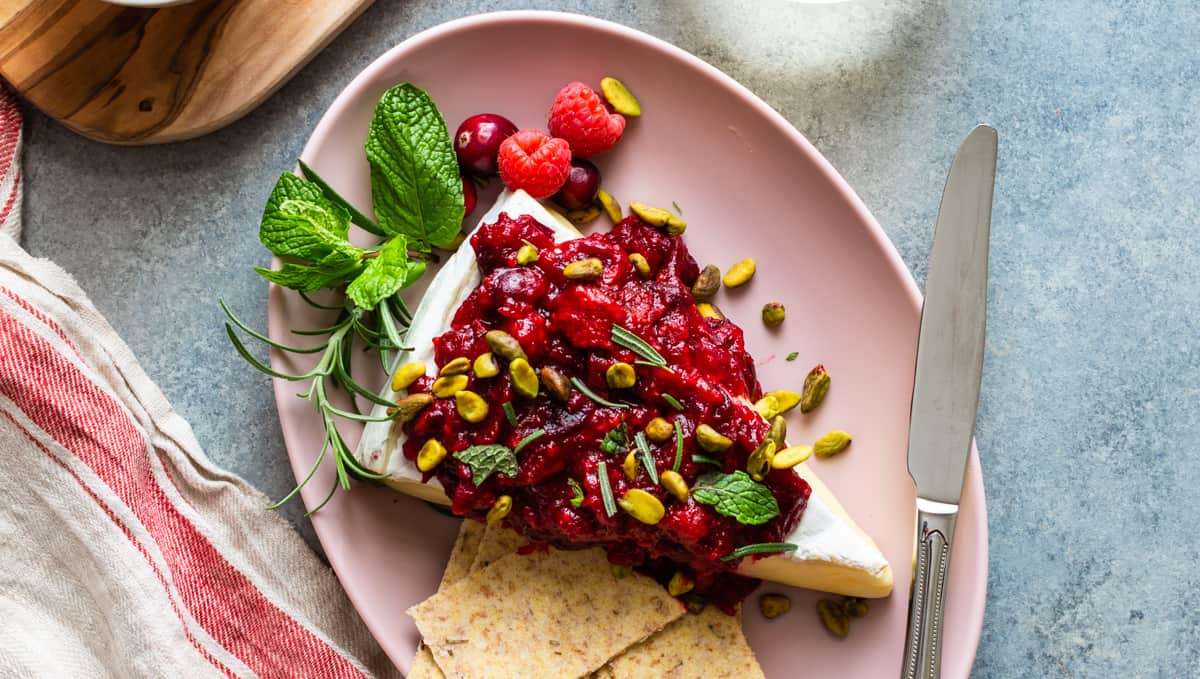 - Top with the berry sauce, pistachios and mint. Serve immediately with crackers, apples or pear slices. ⠀