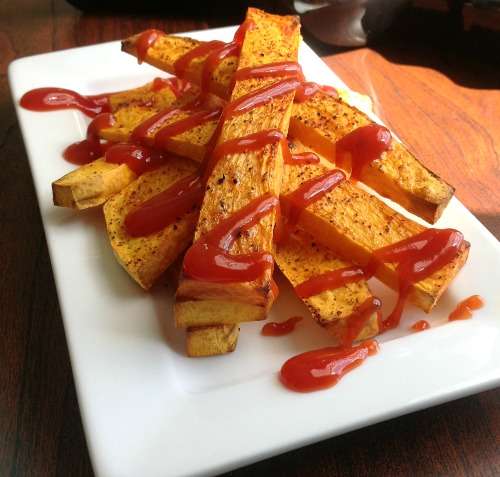 - Coat fries with approx. 1 teaspoon of olive oil and season with salt, pepper, garlic powder, and cayenne pepper.