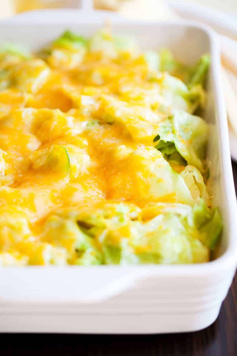 A blanket of cheese covers this baked cabbage for a delicious vegetable side dish to pair with any meal. The slightly sweetened cabbage offers a light crunch and balances beautifully with the salty cheeses for a crave-worthy accompaniment that will be enjoyed again and again.