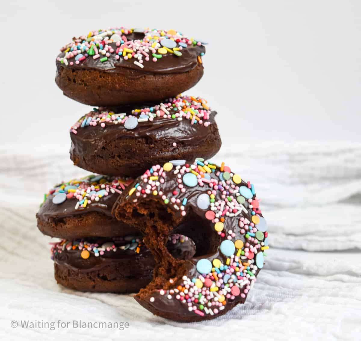 Chocolate sprinkle donuts with chocolate chips and a chocolate ganache top! The ultimate chocolate baked donuts.