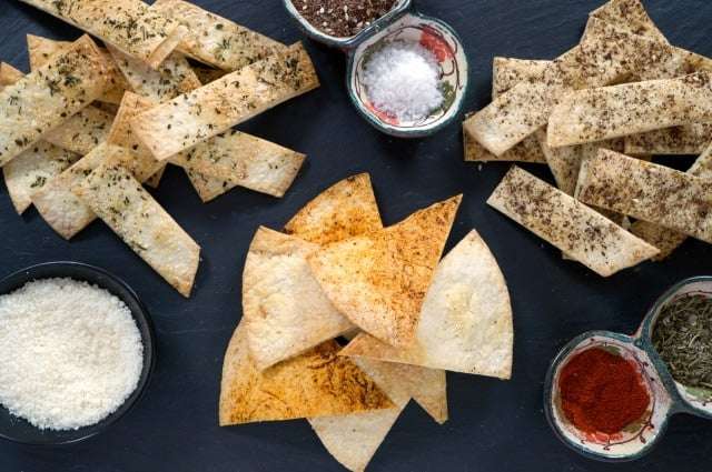 Light, flaky, and crisp, seasoned with a variety of sweet and savory spices, Baked Flour Tortilla Chips are a satisfying low-guilt snack.