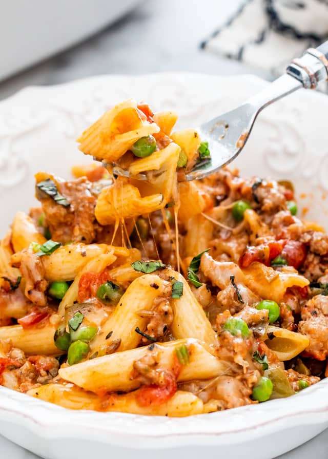 This Baked Penne with Italian Sausage is cheesy, it's saucy and totally made from scratch! Freezer friendly and an easy dreamy weeknight dinner!