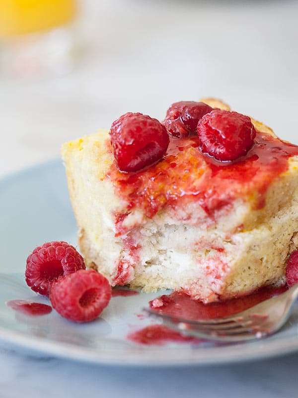 - In a large bowl whisk eggs, milk, butter, orange zest and vanilla together. Slowly pour over bread layers making sure to coat evenly. Wrap dish tightly with foil and refrigerate overnight.