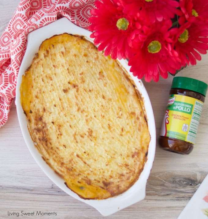 Give your weeknight dinner a Latin twist and make this delicious Baked Yuca Pie filled with shredded chicken and topped with lots of cheese