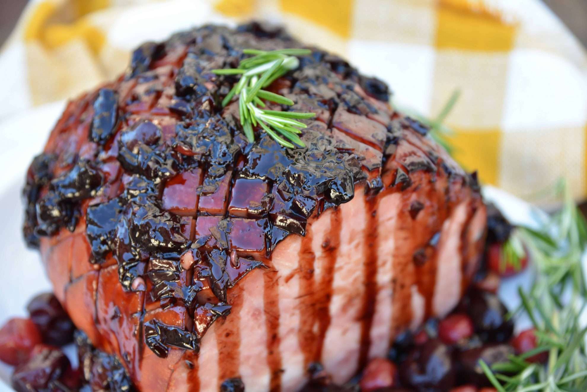 Balsamic Cherry Ham Glaze is an easy ham glaze for your Christmas ham or any baked ham throughout the year. Tart cherries, balsamic vinegar and brown sugar lend bold flavors.