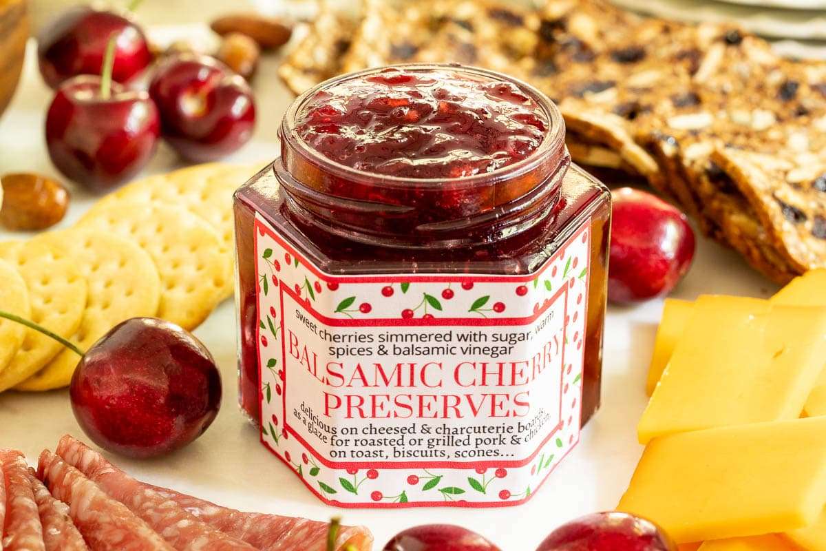 With plump cherries, warm spices and a touch of white balsamic these Balsamic Cherry Preserves are amazing on cheese and charcuterie boards, make a great breakfast spread and are wonderful for glazing roasted poultry and pork.