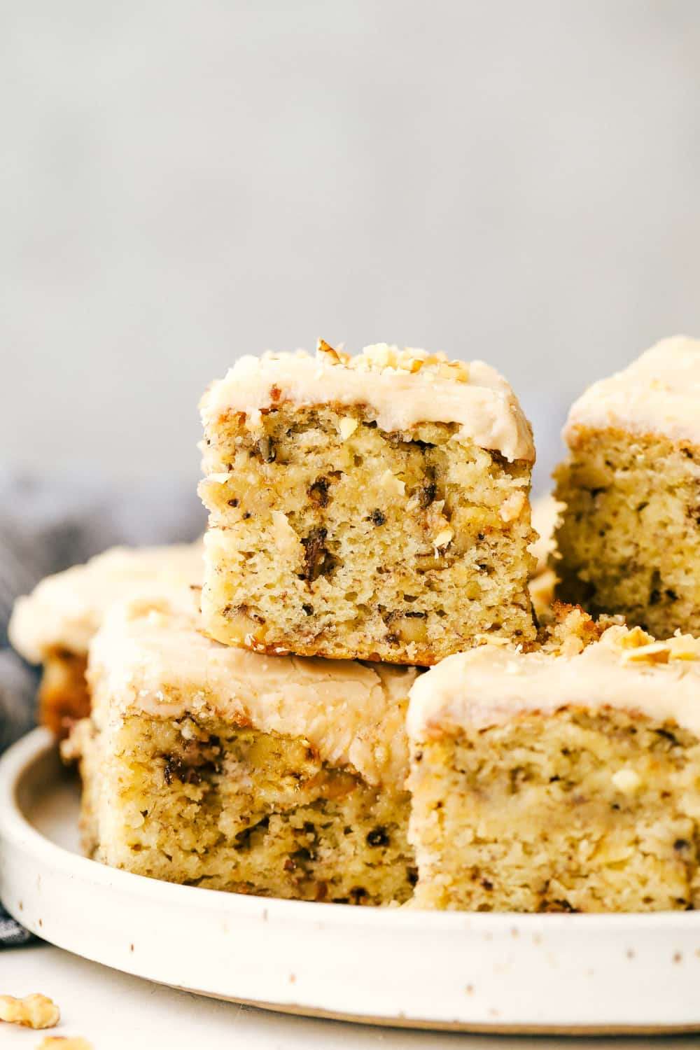 Banana bread bars are moist and flavorful and land somewhere between a cake and a bread with the most amazing brown butter frosting on top! Great for breakfast or an afternoon treat with a cup of coffee, both the texture and flavor are crave-worthy!