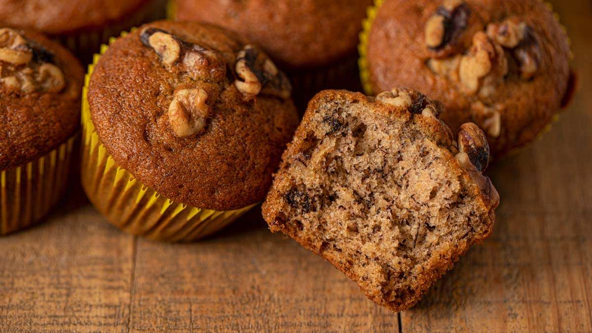 Banana bread muffins are made from a classic easy banana bread recipe topped with walnuts for an easy portable breakfast.