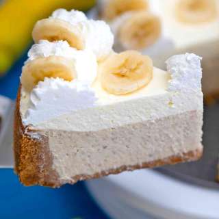 A delicious hybrid of Banana Cream Pie and cheesecake makes this dessert a rich, creamy, pile of cheesecake-y banana deliciousness. It's the perfect finale to any meal!
