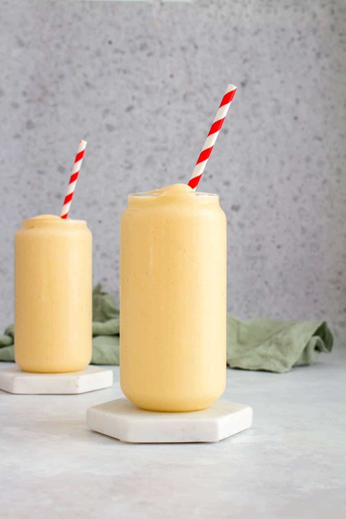 Thick, creamy, and sweet, this high protein Banana Peach Smoothie is so easy to make! Made with frozen fruit, yogurt, milk, and a splash of maple syrup, this healthy smoothie is a delicious way to start off your day.