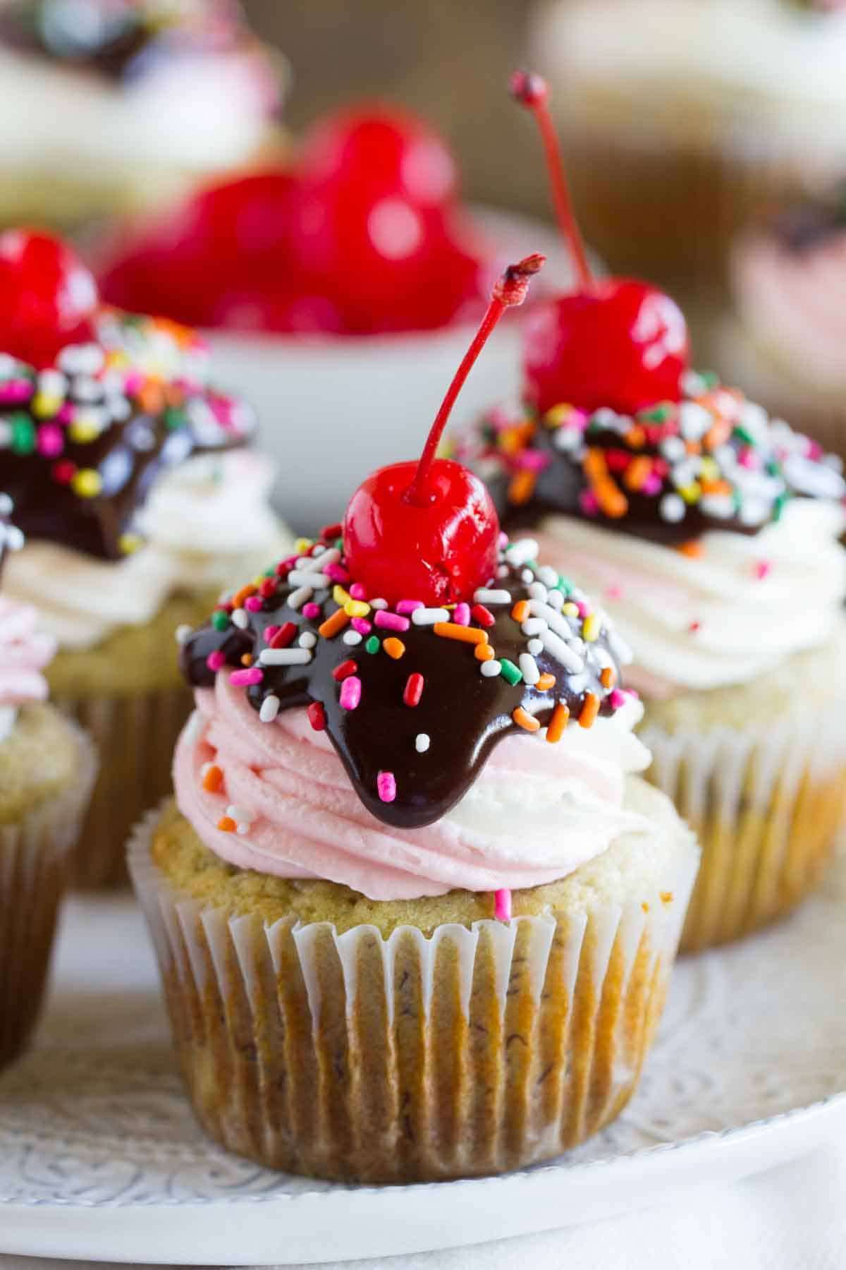 Banana Split Cupcakes