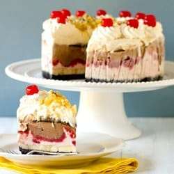 - Note: If you are making homemade ice cream, your best bet is to time the assembly so that you can add the freshly-churned ice cream right onto the cake. It will be the perfect consistency. If you will be using already-made ice cream, pop it in the refrigerator for about 30 minutes before you plan to need it and then mix it really well with a spatula so that it is smooth and spreadable.