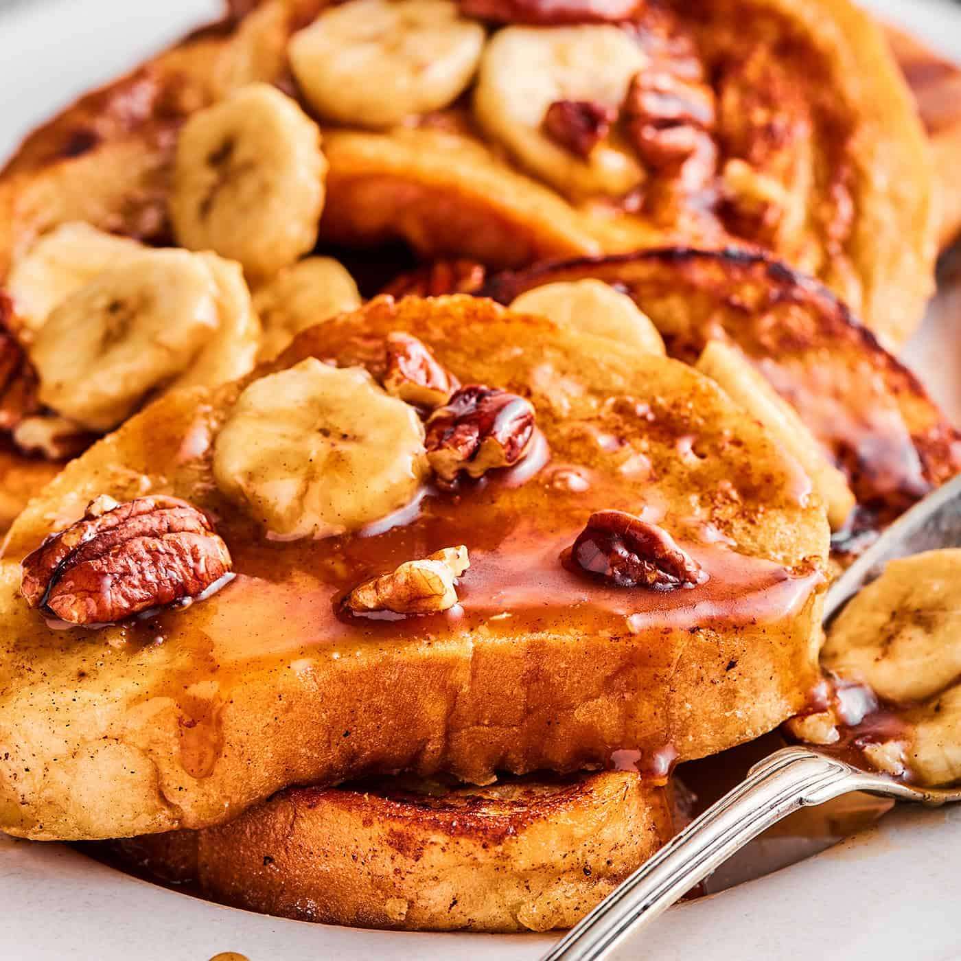 - Spoon the warm bananas foster over the prepared French toast. Garnish with additional nuts and/or a sprinkle of cinnamon if desired.