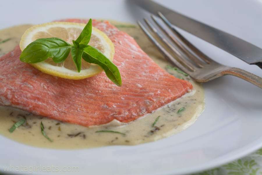 The sauce will make enough of for 4-6 salmon filets or chicken breasts. Recipe from Bon Appetit, circa 1992, originally from the Park Hotel Kenmare, in County Kerry.