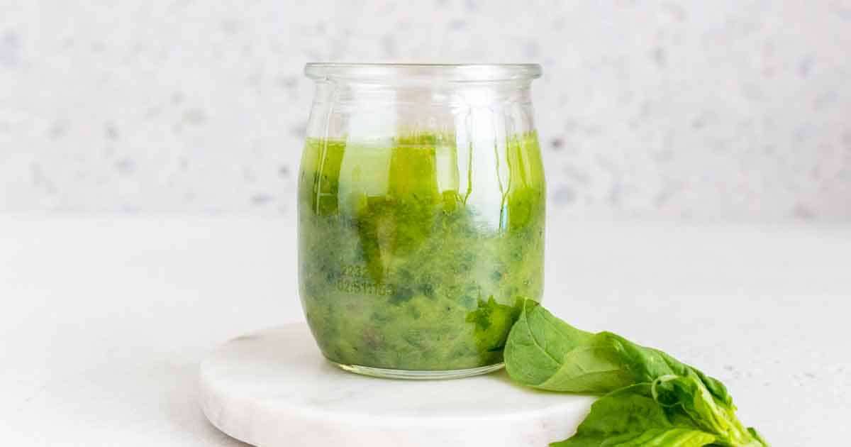 - To a food processor, add the basil, shallot, garlic, salt, pepper, and oil. Blend it until well combined and smooth.