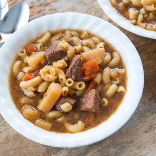 - If you are not going to be eating this all at one sitting, cook the pasta separately and add it to each bowl. If the macaroni is left in the soup overnight, it will soak up the broth and become mushy.