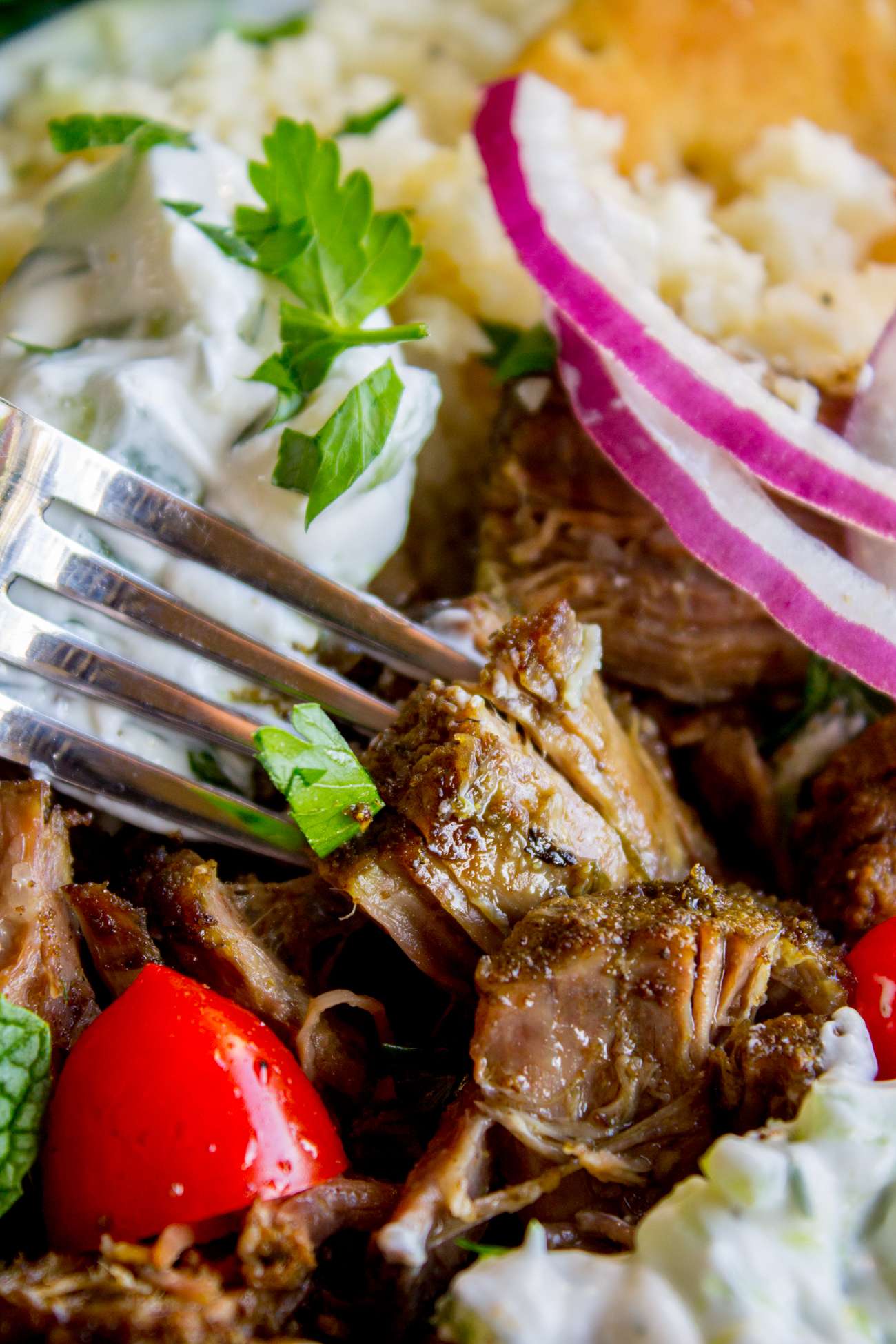 All the gyro flavors you love, shredded beef style! This is a super delicious and HEALTHY option for dinner. Make it in the Instant Pot or the Crock Pot! Don't forget to pair it with Tzatziki Sauce (<