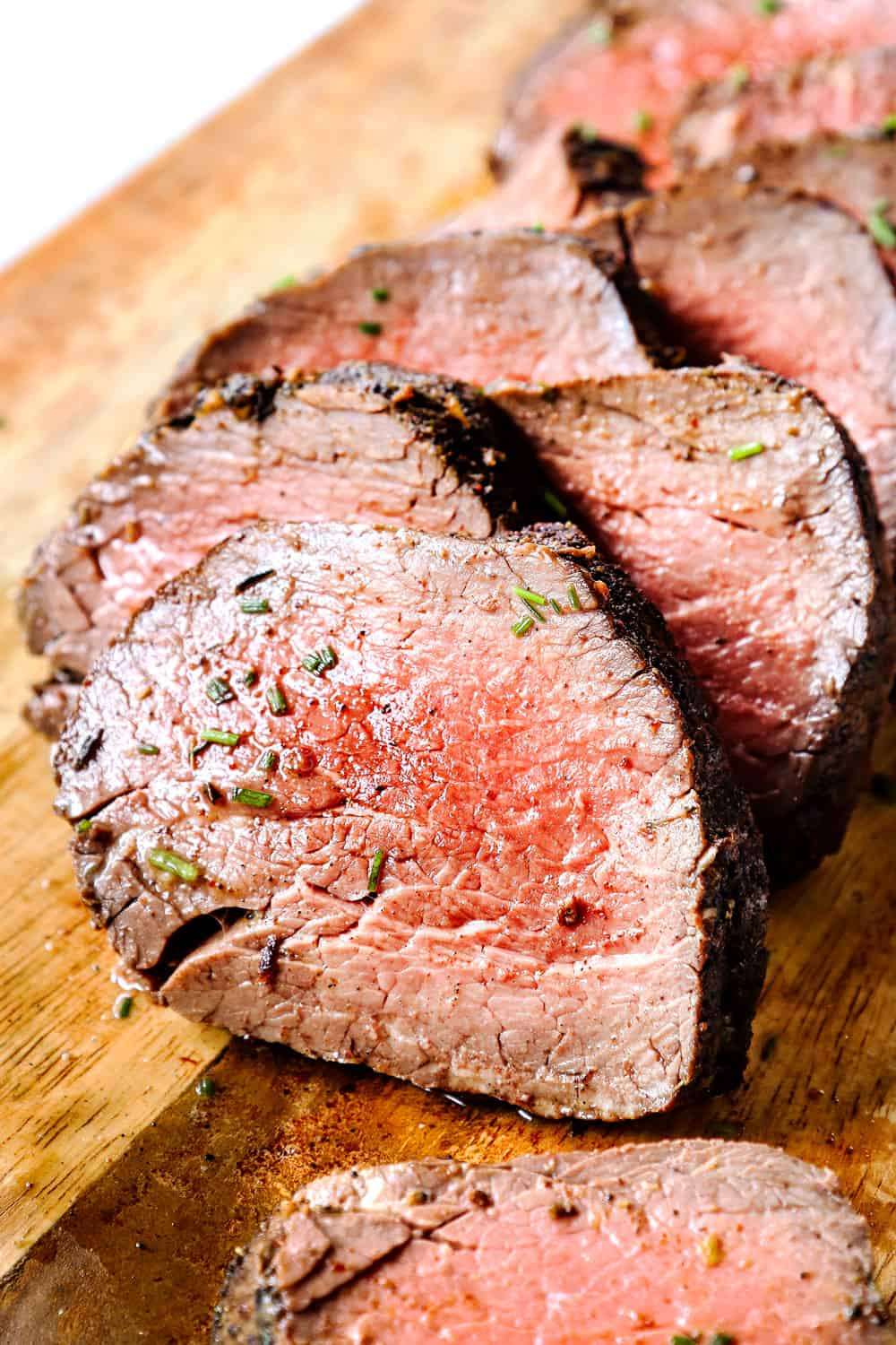 - REST AND SLICE: Remove skillet from the oven and baste roasts several times with the buttery juices from the skillet, then transfer roasts to a cutting board and tent loosely with foil. Let beef rest for 15 minutes before slicing into ½-inch thick slices. Serve with Horseradish Cream Sauce.
