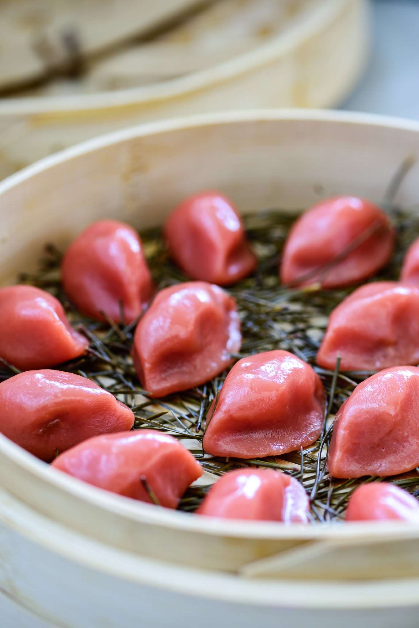 - To assemble, tear off a small piece of the dough enough to make a roughly 1-inch ball. Roll tightly between your palms to shape a ball.