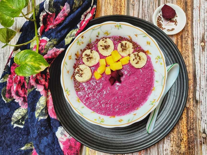 - The beetroot smoothie is ready!! Top it with your favourite fruits and dig into it!