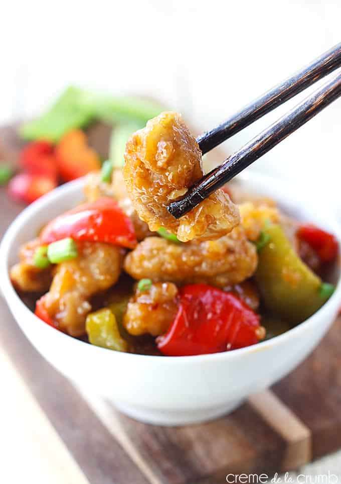 Tender crispy beef tossed with bell peppers and onions in a sweet and tangy sauce! On the table in 30 minutes!