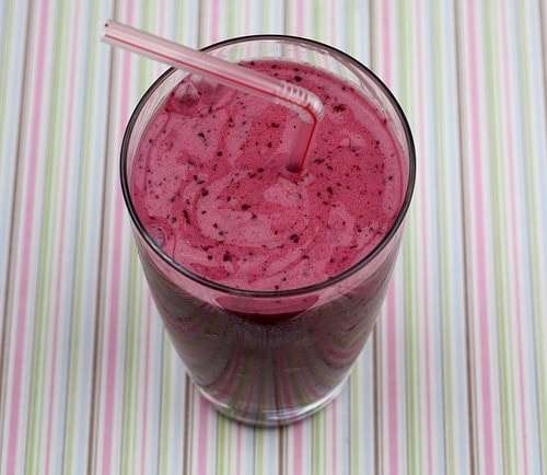 - Add the yogurt, blueberries, banana, and strawberries into the blender. If you aren't using frozen fruit, throw in a couple of ice cubes.