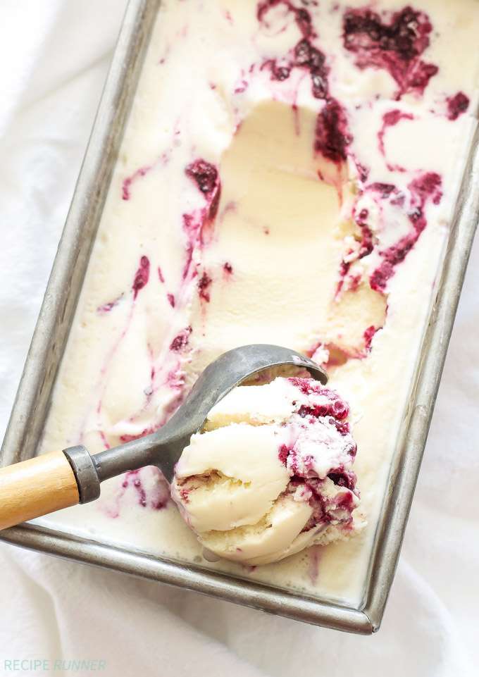 - Use a skewer or knife to swirl the berry sauce into the ice cream.