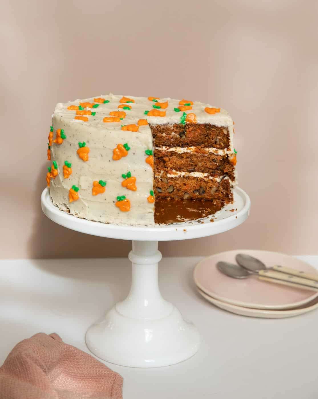 - Decorating tip. Here's how I pipe on carrots. I use a Wilton #150 round tip. I do a squiggly line, starting larger and then going smaller to imitate the shape of a carrot. Two tiny lines are the carrot stem. It doesn't have to be perfect! Buttermilk replacement. You can use 2/3 cup milk and add in 1 tablespoon of lemon juice. Let the milk stand for 10 minutes until it begins to curdle and use as is! How to store: Keep at room temperature, covered, for up to two days. If longer, feel free to store in the fridge for up to 4 days, in an airtight container. Using 9-inch cake pans. I love the look of 8-inch cake pans but this recipe will work with 9-inch too! You'll have slightly thinner layers but it'll still look gorgeous and delicious.