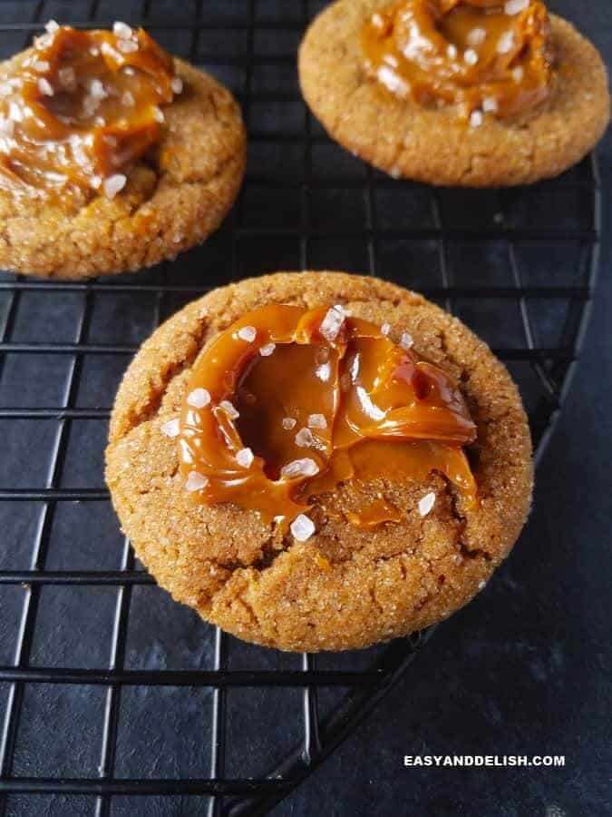 Make these Cinnamon Cookies with salted dulce de leche quickly! They are gluten-free, full of warm spices, and have a texture similar to molasses cookies!