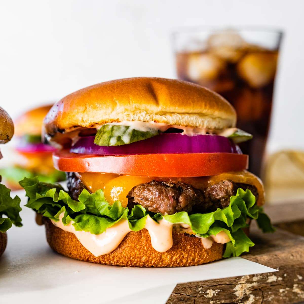 Best Hamburger Recipe (Perfect and Juicy Burger) – Nothing beats a juicy burger topped with fresh veggies on a toasted bun with a slice of cheese smothered with an irresistible burger sauce. These tasty burgers are ready in less than 20 minutes and a must-make for your next cookout or BBQ gathering—no fillers or binders in this recipe. You can easily double or triple this recipe.