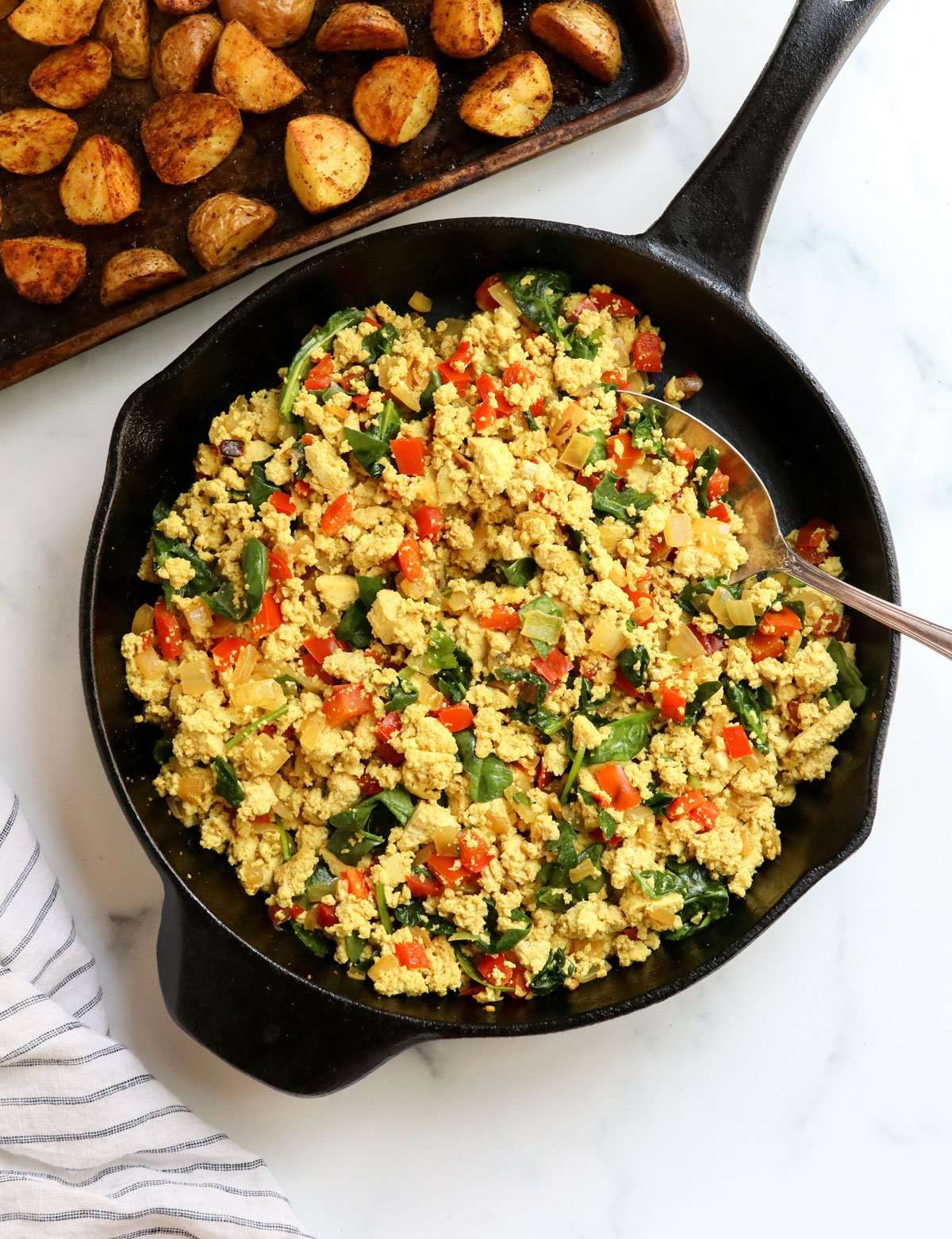 This Tofu Scramble is a delicious plant-based alternative to eggs! It's loaded with protein and veggies, and takes less than 15 minutes to prepare.