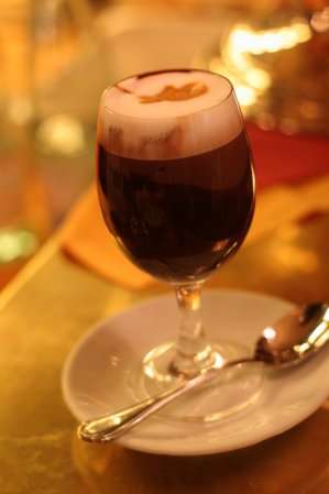 - Fill the bottom third of a clear, heat-proof glass with the warm chocolate mixture. Pour in some coffee or espresso. (If you want to help it create a definite layer, pour it over the back of a spoon, into the glass.)