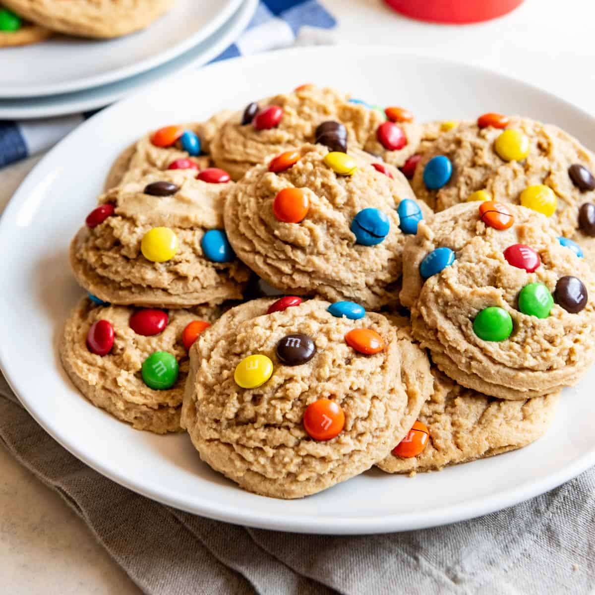 Big, Soft Baked Peanut Butter M&M Cookies are a cookie lover's dream! Classic peanut butter and chocolate combo in a perfect, jumbo sized cookie that stays super soft with a candy crunch in every bite!
