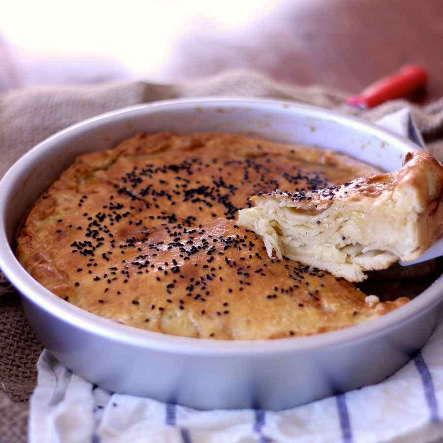 - Pour la dernière couche de pâte, dorer avec le jaune d’œuf et saupoudrer de graines de nigelle.