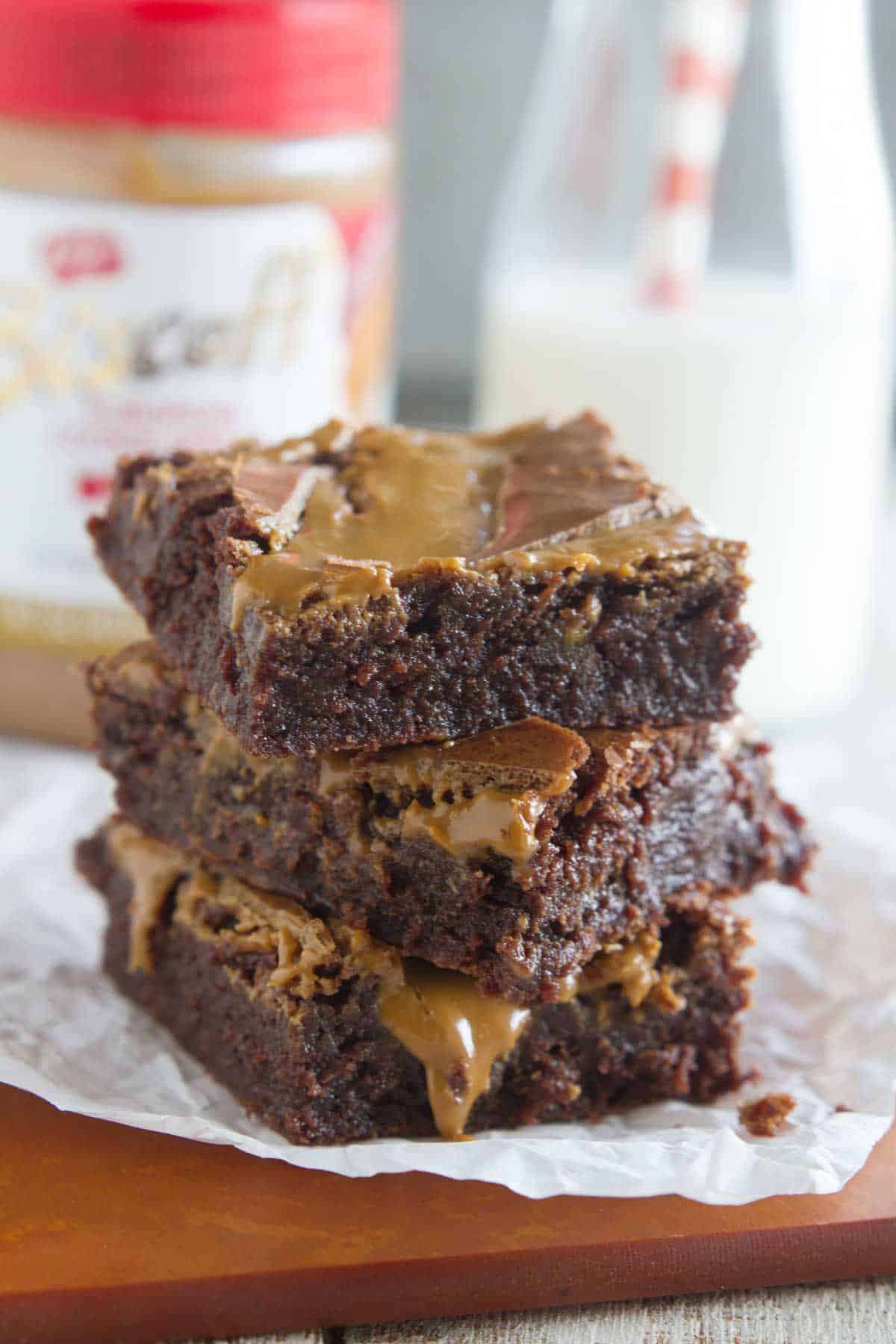 These Biscoff Brownies consist of rich chocolate brownies topped with a ribbon of Biscoff spread making a decadent and irresistible brownie.