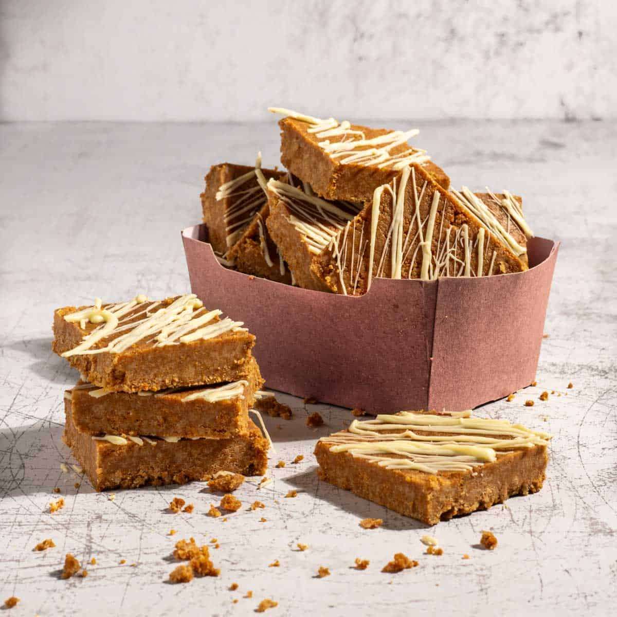 These Biscoff slices are both scrumptious and completely effortless to make. It's the perfect combo of crunchy Lotus cookies and velvety Biscoff spread. Add in creamy white chocolate, a bit of golden syrup and a touch of butter for the easiest, no-bake Biscoff cake-like slices ever.