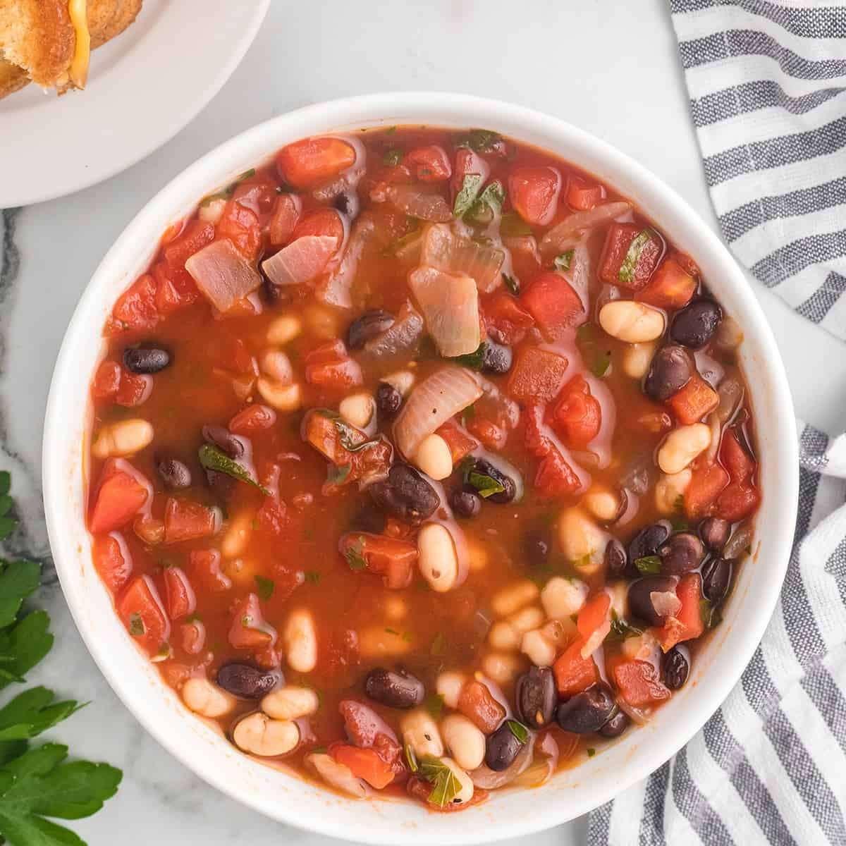 Learn to make my simple Black and White Bean Soup! Pair it with an easy grilled cheese sandwich for a hearty dinner on a busy school night.