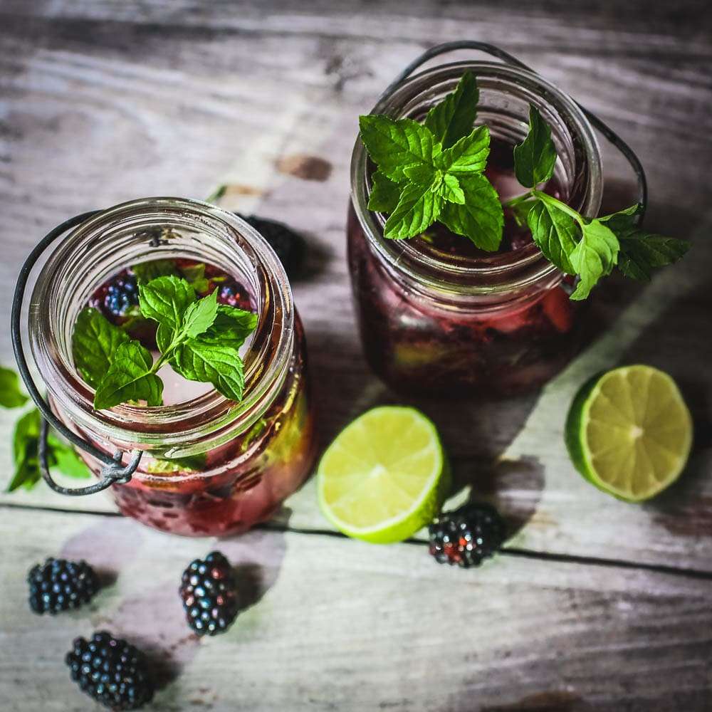 - Muddle the blackberries and 4 of the leaves of mint in a mixing glass. Add ice and stir in vodka, elderflower liqueur and lime juice. Pour into a highball glass (strained if you don't like bits in your drink) filled halfway with ice. Top with ginger beer and garnish with the remaining mint and a blackberry or two.