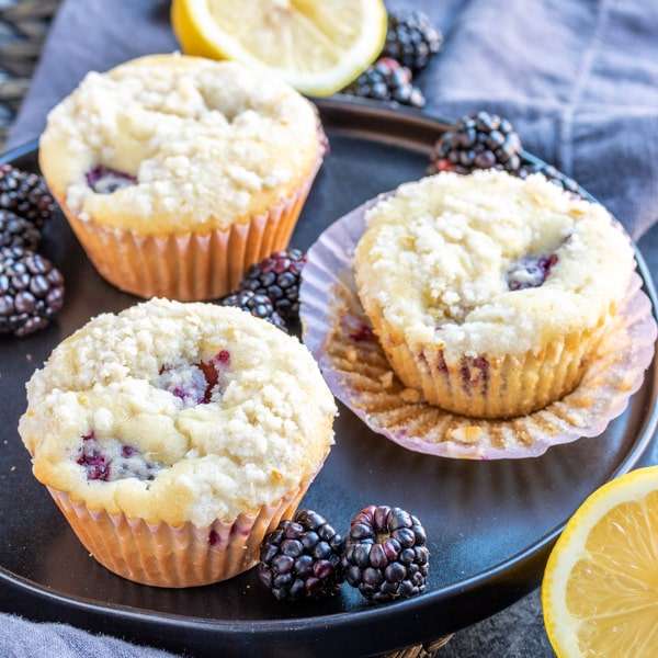 These easy Blackberry Lemon Muffins are made from scratch with fresh blackberries and sweet lemon crumbs on top.