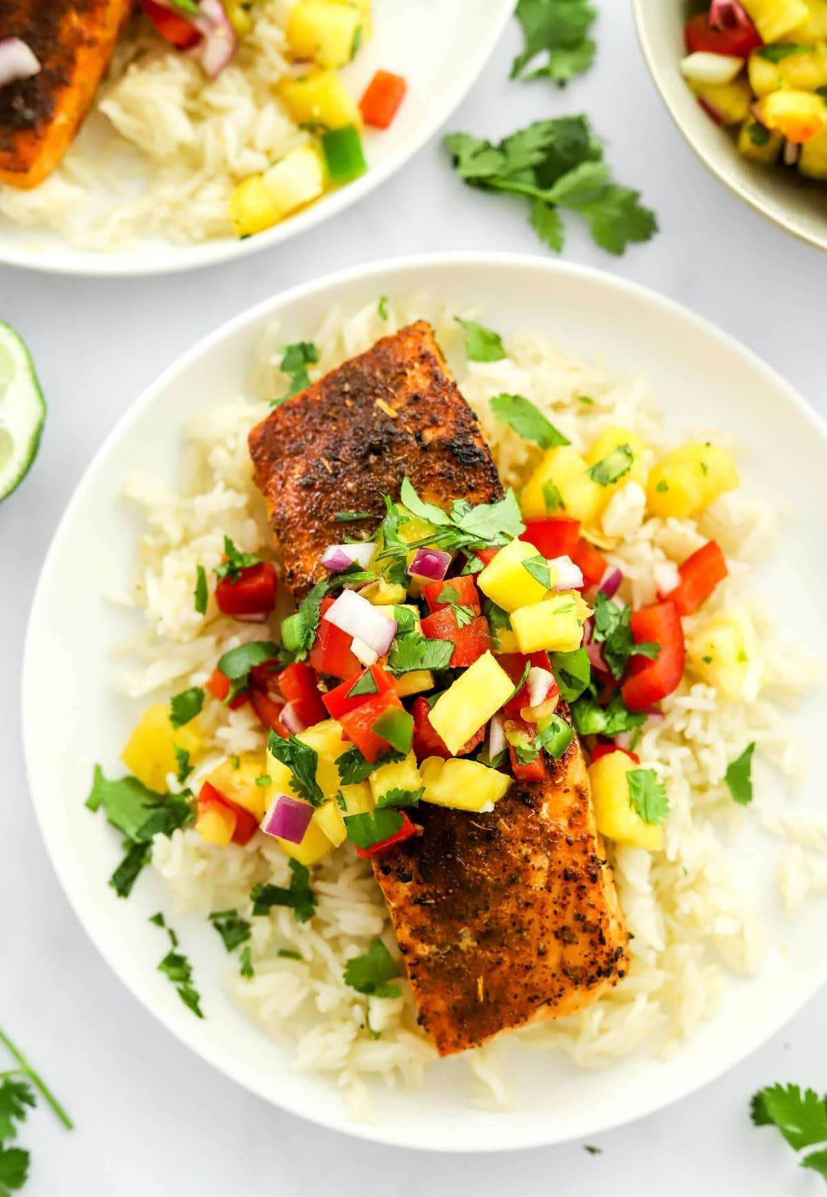 - Serve over rice and top with pineapple salsa.