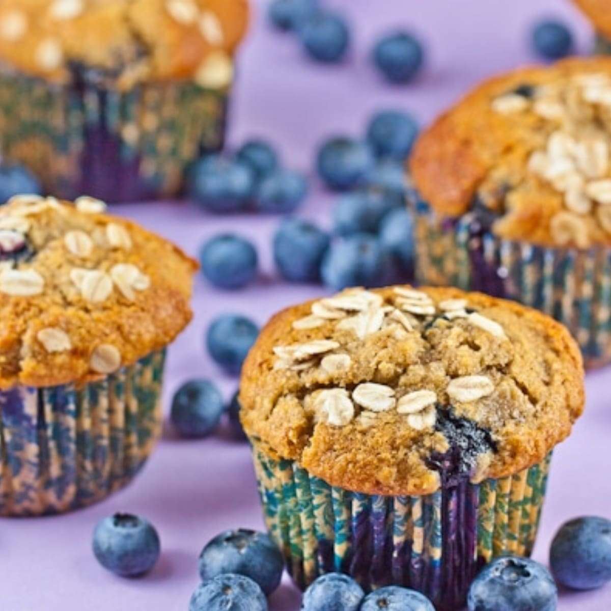 - Divide the mixture between the prepared muffin liners, filling them until almost full. Sprinkle the top with the rolled oats and bake for 20 minutes or until golden brown.