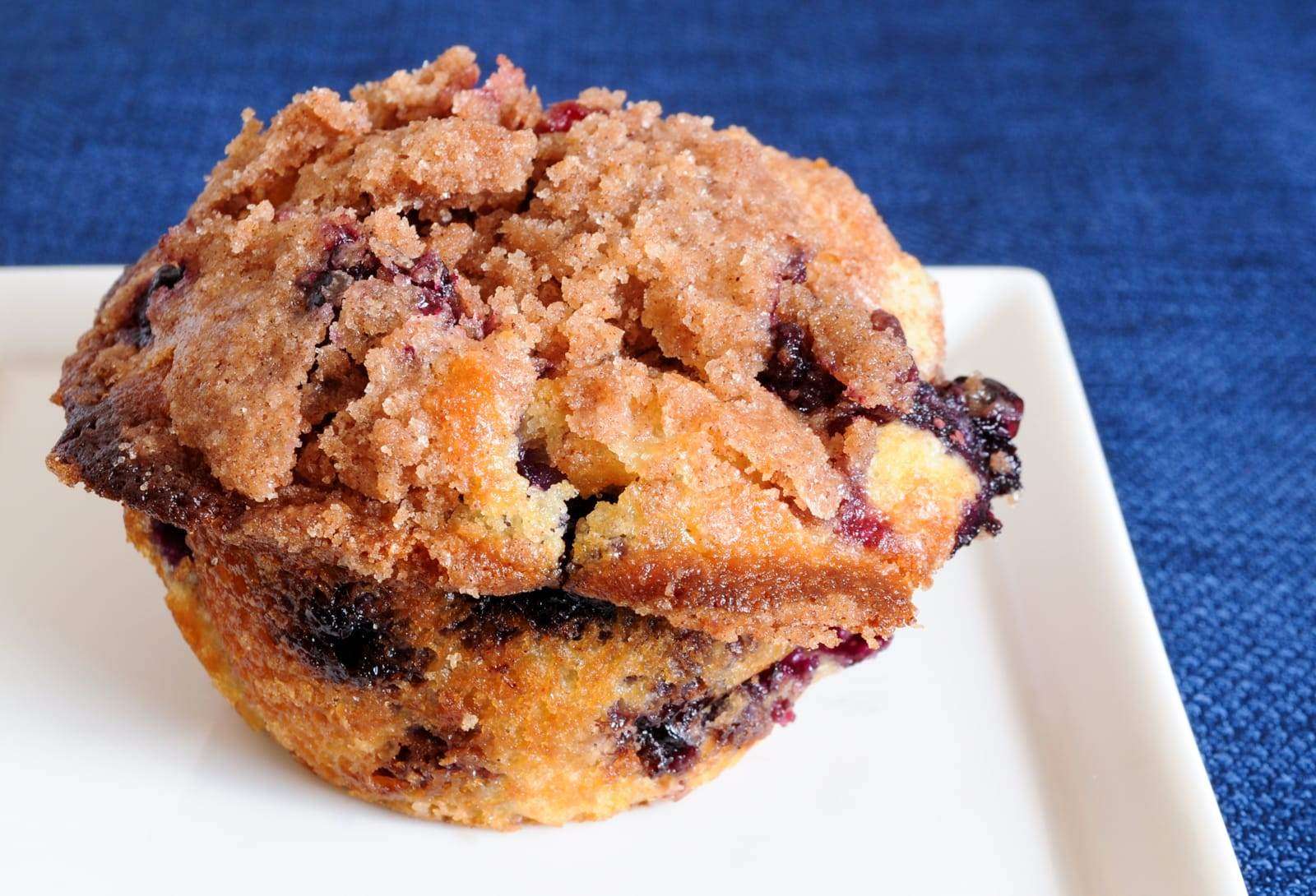 - Slowly add the egg mixture to the flour mixture until just combined. Gently fold in the blueberries. Fill muffin cups to the top (mine only filled 10).