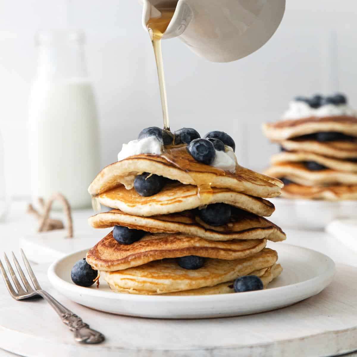 These Blueberry Pancakes are so fluffy and light! Loaded with blueberries, it's the perfect weekend breakfast.