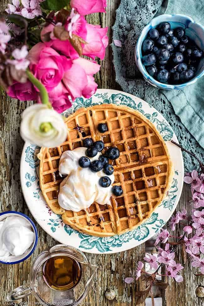 - Serve the waffles with a little coconut cream, fresh blueberries and a dusting of icing sugar. Drizzle with maple syrup or agave nectar.
