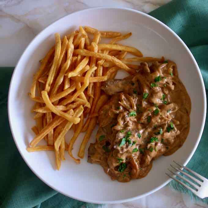 Le bœuf Stroganoff ou boeuf Stroganov (бефстроганов) est une recette traditionnelle russe à base de bœuf poelé puis nappé d’une sauce à la crème smetana.