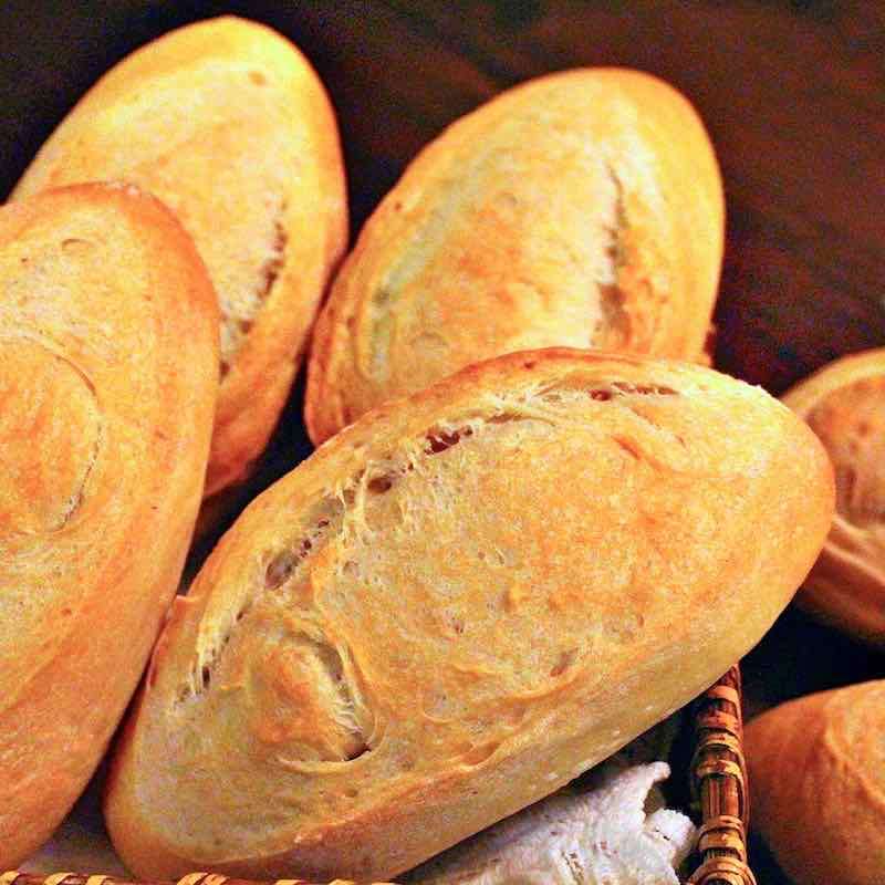 - El pan se conserva bien durante un par de días en una bolsa de plástico, o puede congelarlo hasta un mes. Para recalentar: descongele el pan ligeramente, rocíelo con agua y colóquelo en un horno precalentado a 200°C durante 12 a 15 minutos hasta que esté tibio y crujiente.