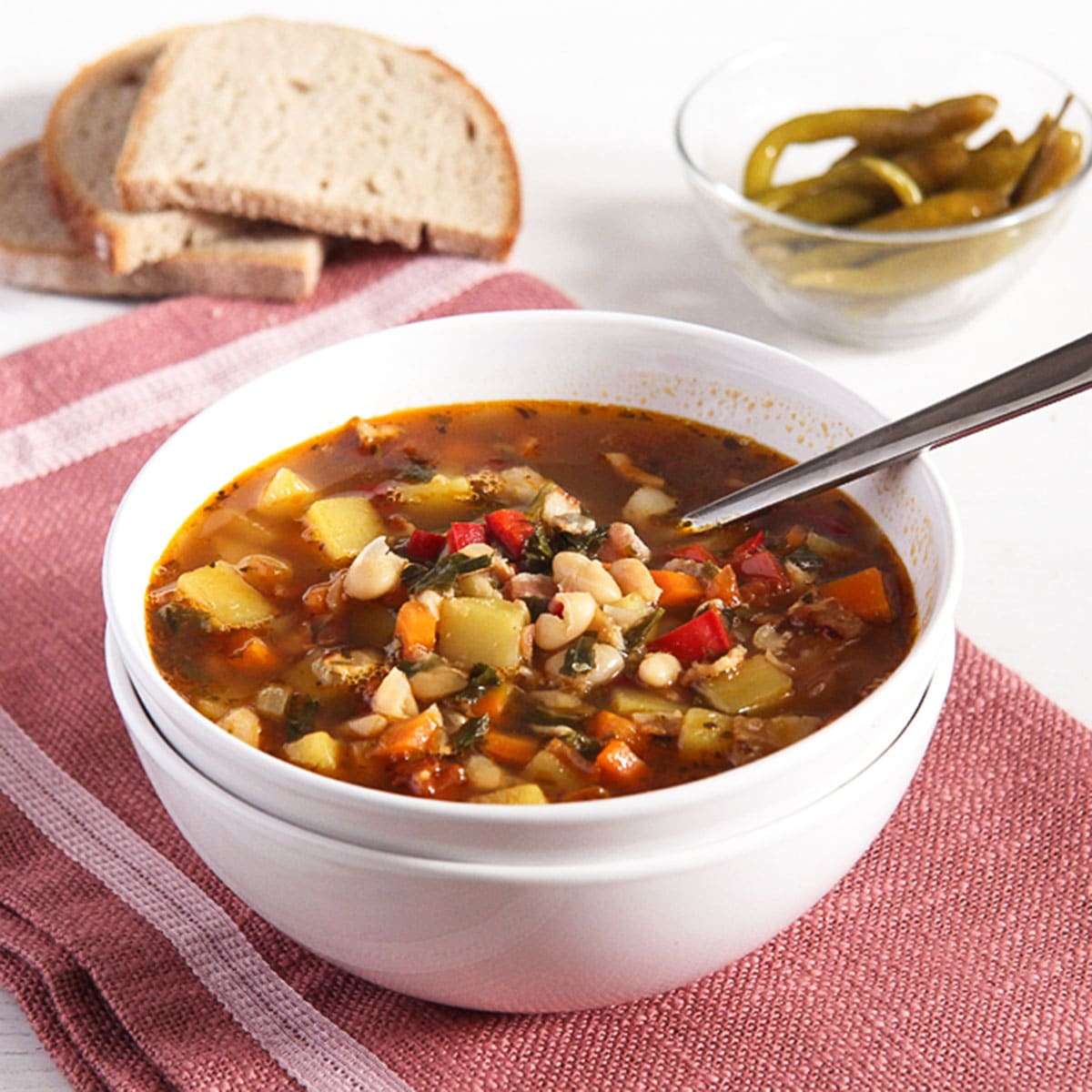 This bone broth vegetable soup with white beans, bacon, and tarragon is a comforting, warming soup for cold days.