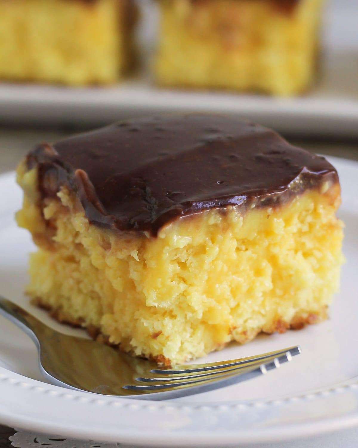Everything you love about Boston cream donuts and pies, in the form of a cool and creamy pudding poke cake!