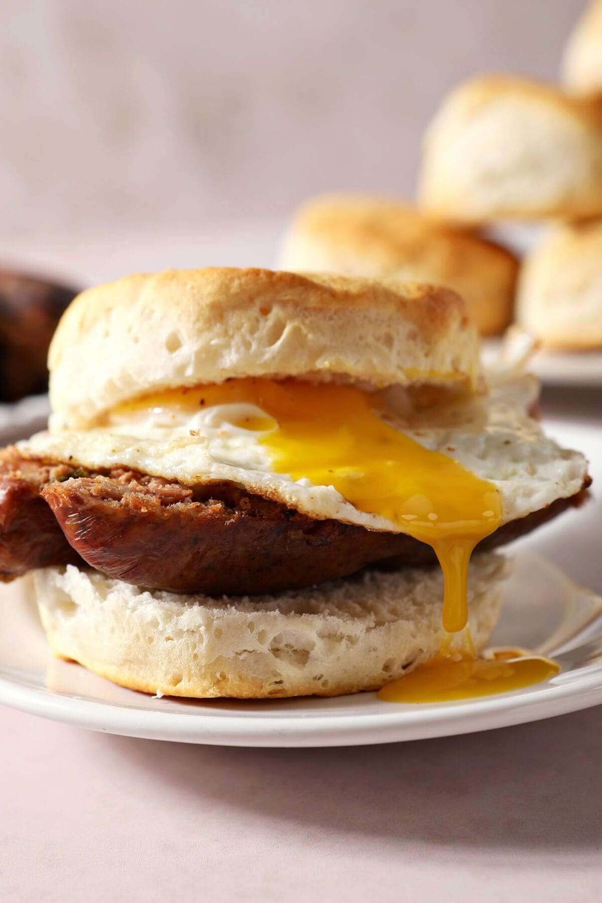 Want to know one of our favorite ways to start the day during football season? These Boudin Biscuit Breakfast Sandwiches are the BEST breakfast sandwich recipe because they're so simple and flavorful! Grab your favorite boudin and cook it up, fry an egg and serve them together on a homemade butter biscuit for a flavorful, savory breakfast.