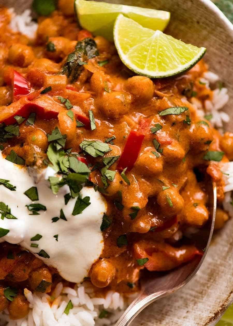 - Serve over rice with a dollop of yogurt, extra sprinkle of coriander and squeeze of lime (don't go overboard, I often do and it's too sour!)
